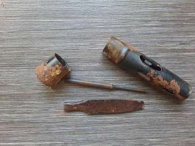 - Тубус с крышкой. Служит контейнером, отверстия на стенках позволяют использовать его вместо ручки для шомпола, отвертки, ключа замыкателя газовой трубки;