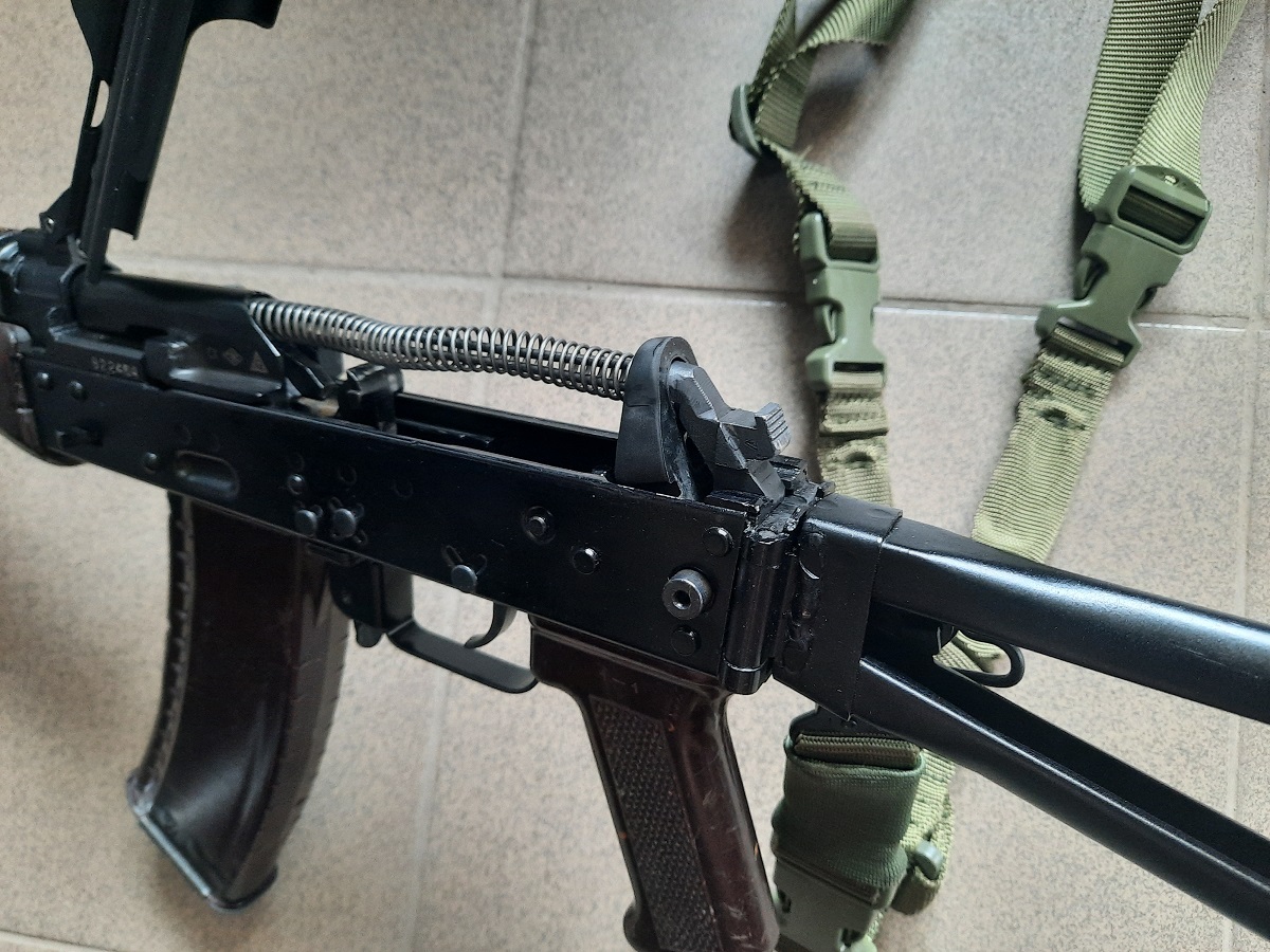 Он был разработан именно для экипажей авиатехники, различных боевых и десантных машин. Был разработан в конце 70-х, вначале 80-х годов и в армии получил название АК Мухобойка, что было связанно с приличной отдачей для такого мелкого калибра среди автоматов.