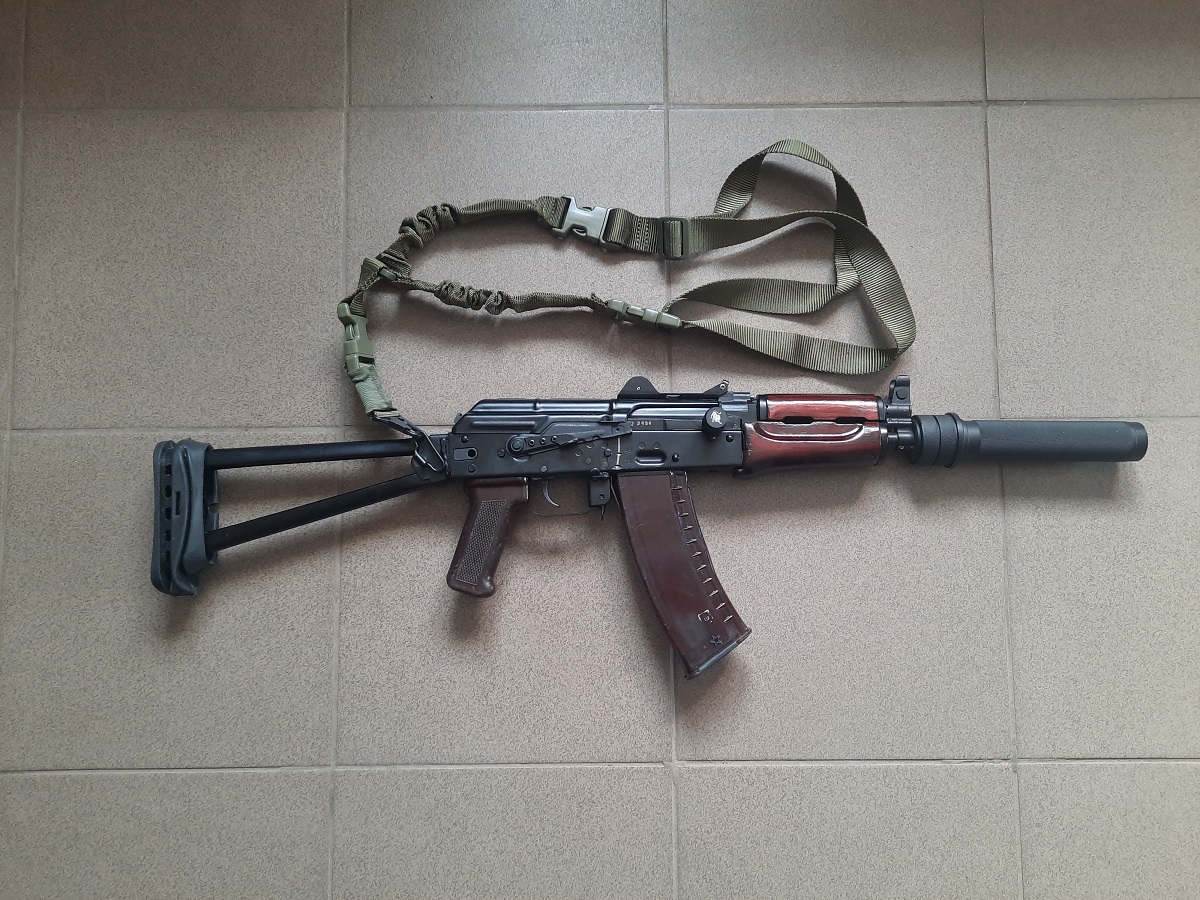 Охолощенный СХП автомат Калашникова АКСУ(АКС-74У) — настоящее боевое оружие, переделанное под стрельбу холостым патроном 5.45х39.