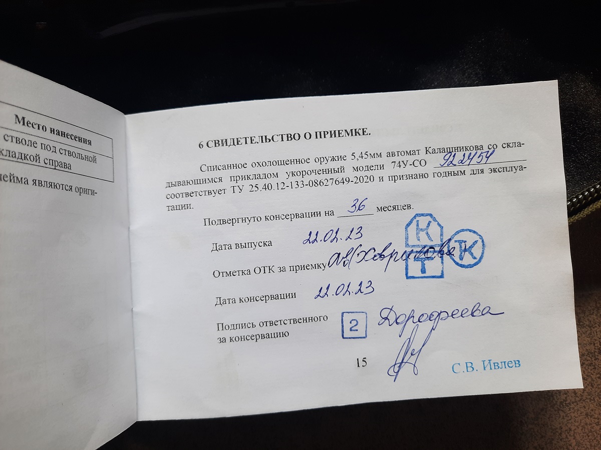 Охолощенный автомат АКС-74У (АКСУ, ТОЗ, СХП, 5.45х39) 83 год + комплект