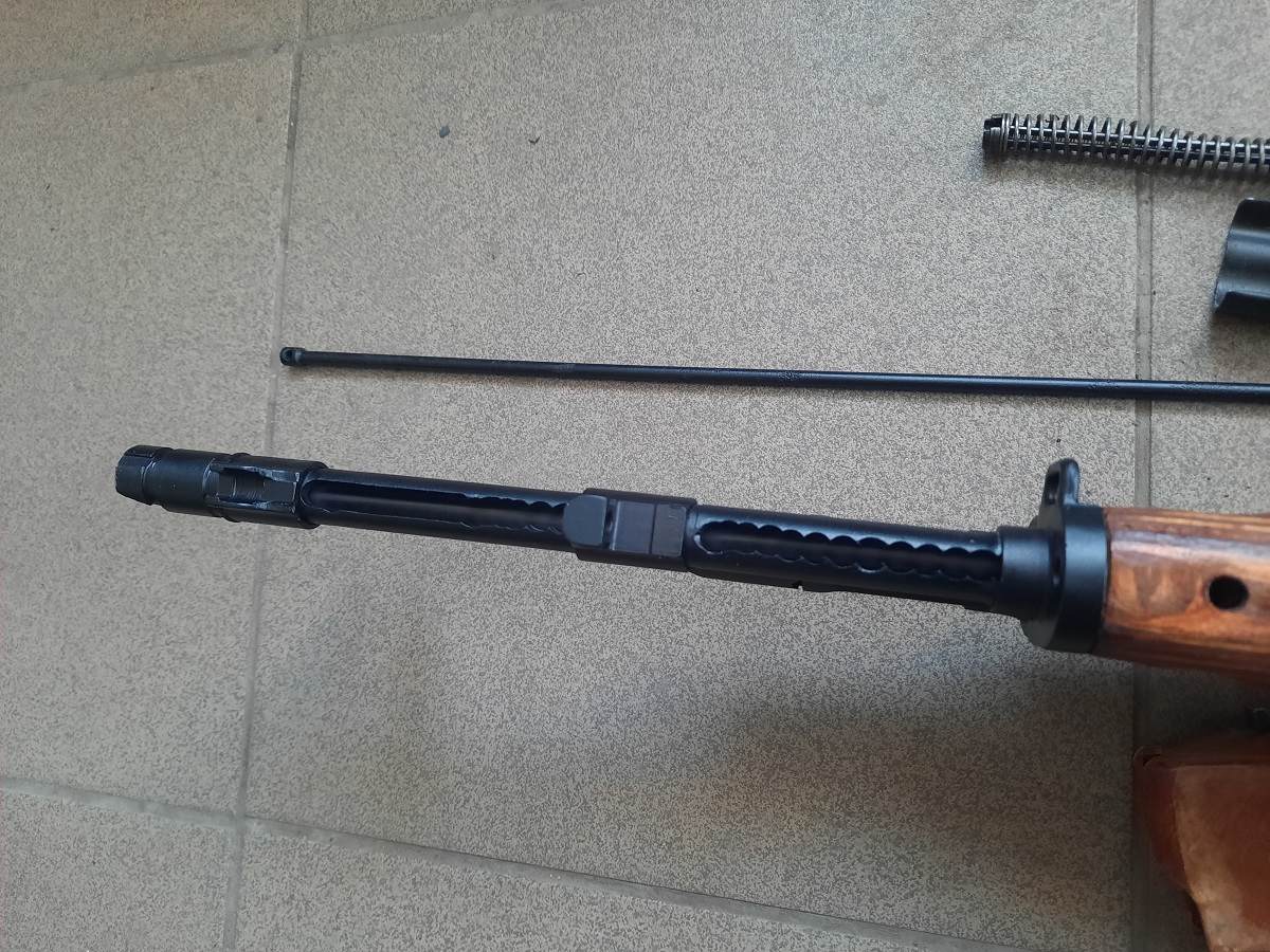 Внешний вид данного образца полностью соответствует боевому прототипу. Приобрести данный экземпляр можно абсолютно свободно, без разрешительных документов и лицензии. Основной материал – металл, приклад выполнен из натурального дерева. Весит изделие 3 кг, длина – 0,88 м.