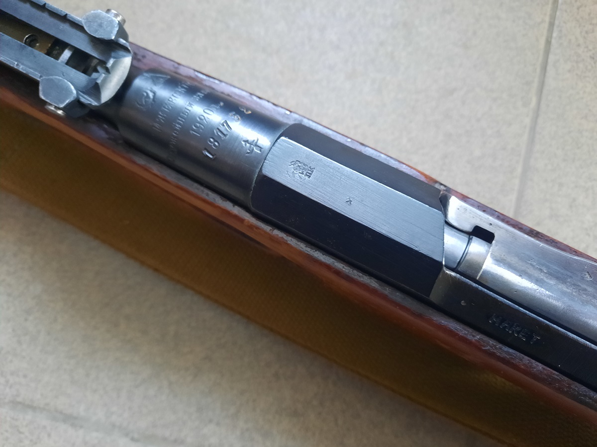Граненка, 1920 года (оригинал СССР). Номер на рамке и тыльнике одинаковый, на затворе другой. Пропил на стволе снизу. Механизм затвора в рабочем состоянии, взводится и щелкает.