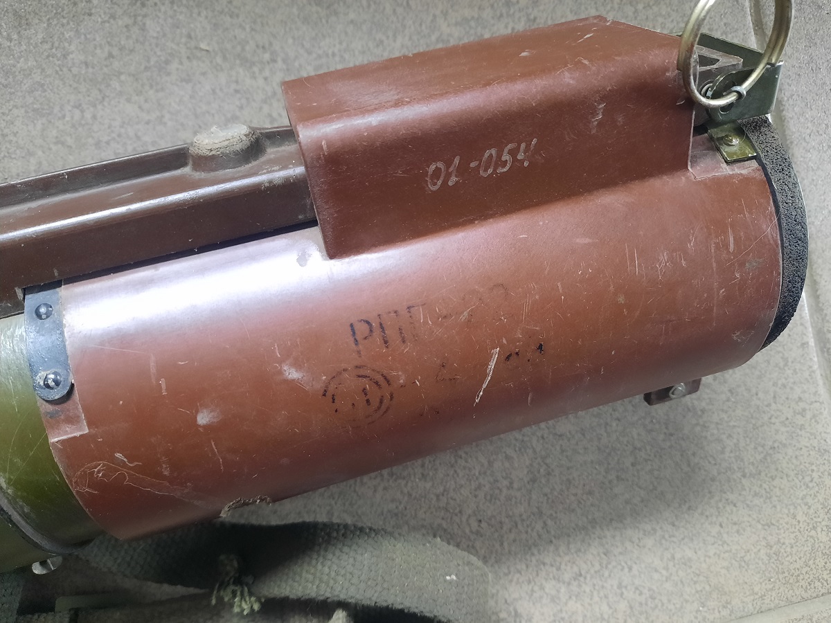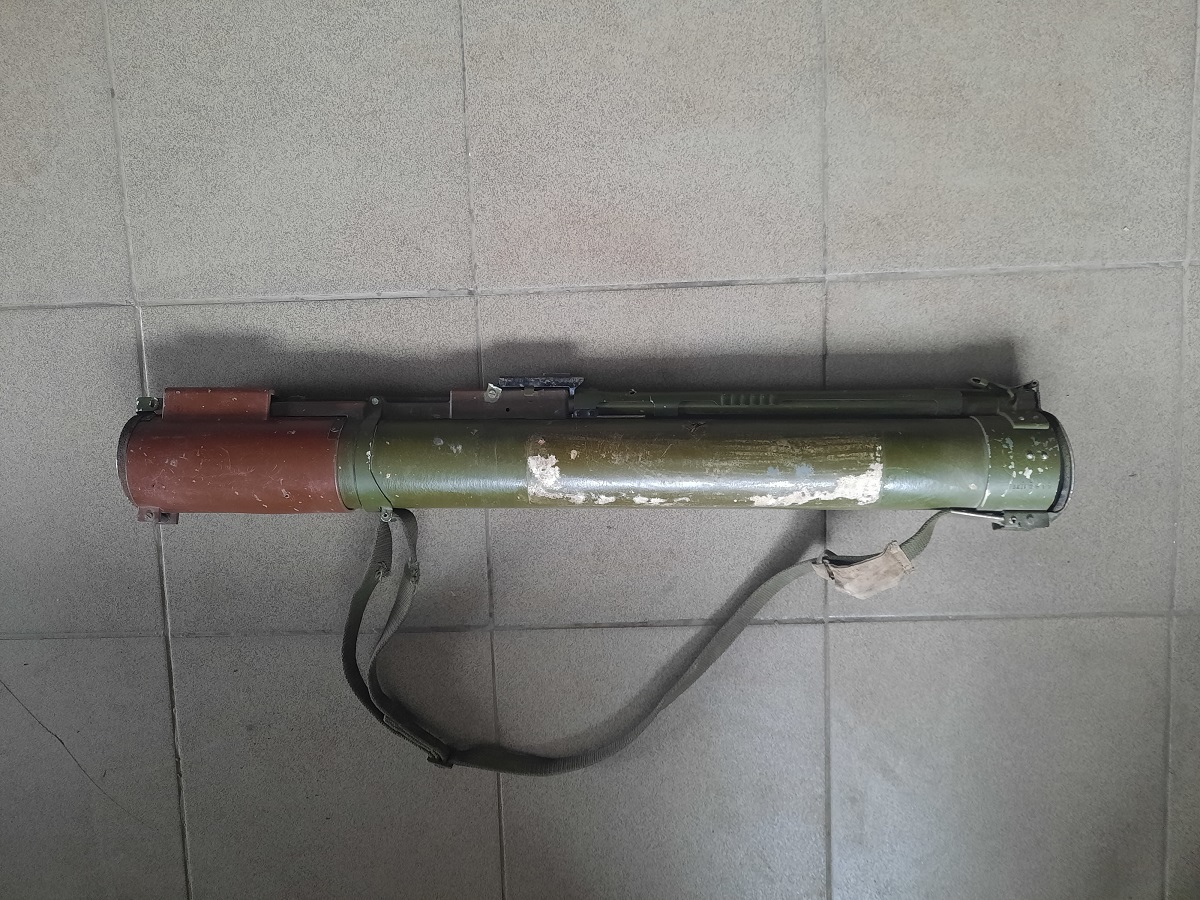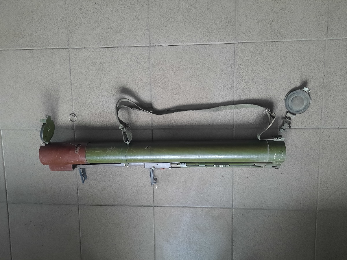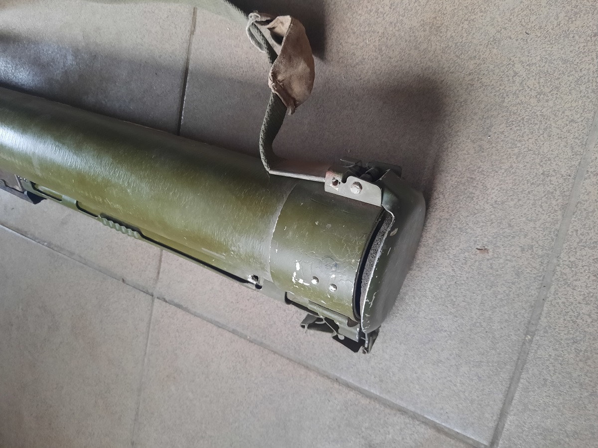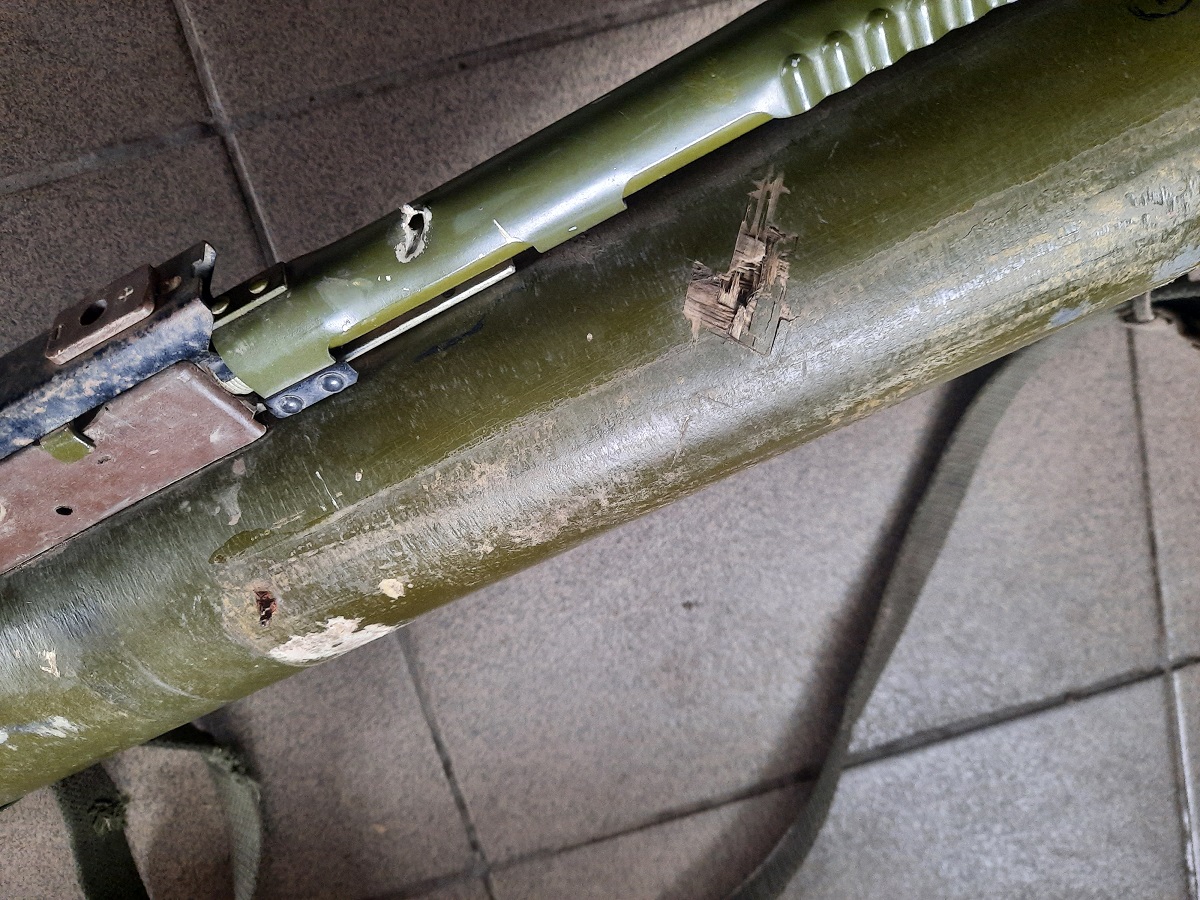 Армейский настоящий тубус гранатомёта РПГ-22 выдвижной (стреляный). Один из осколков застрял в корпусе тубуса.