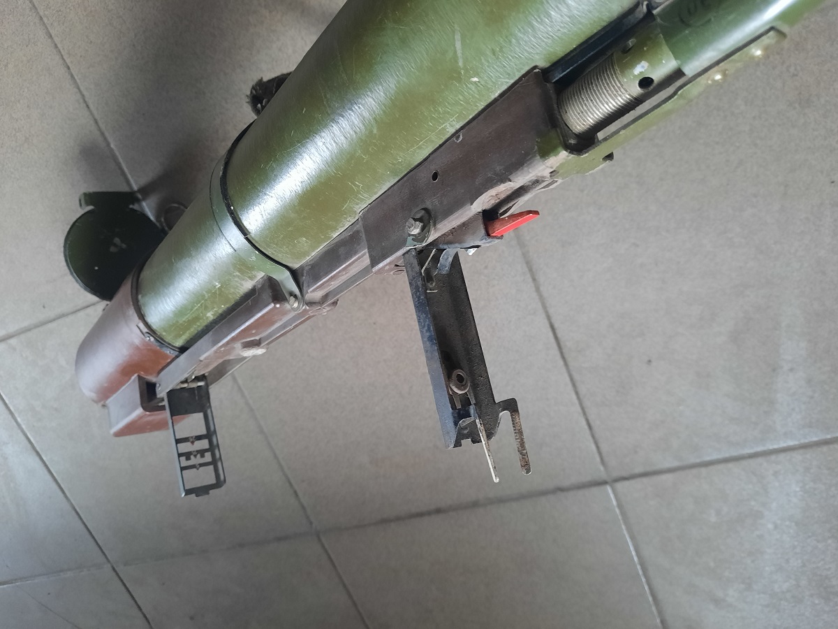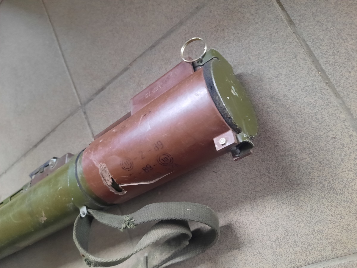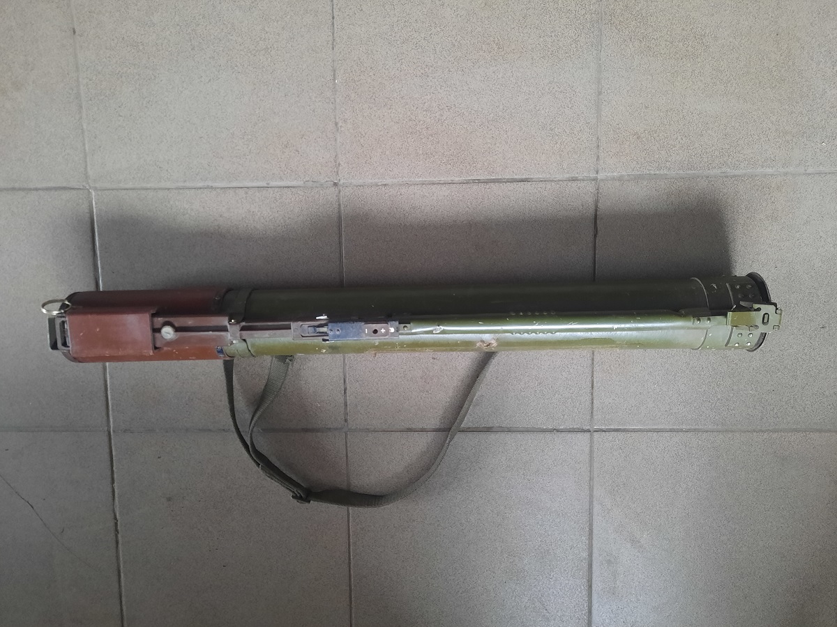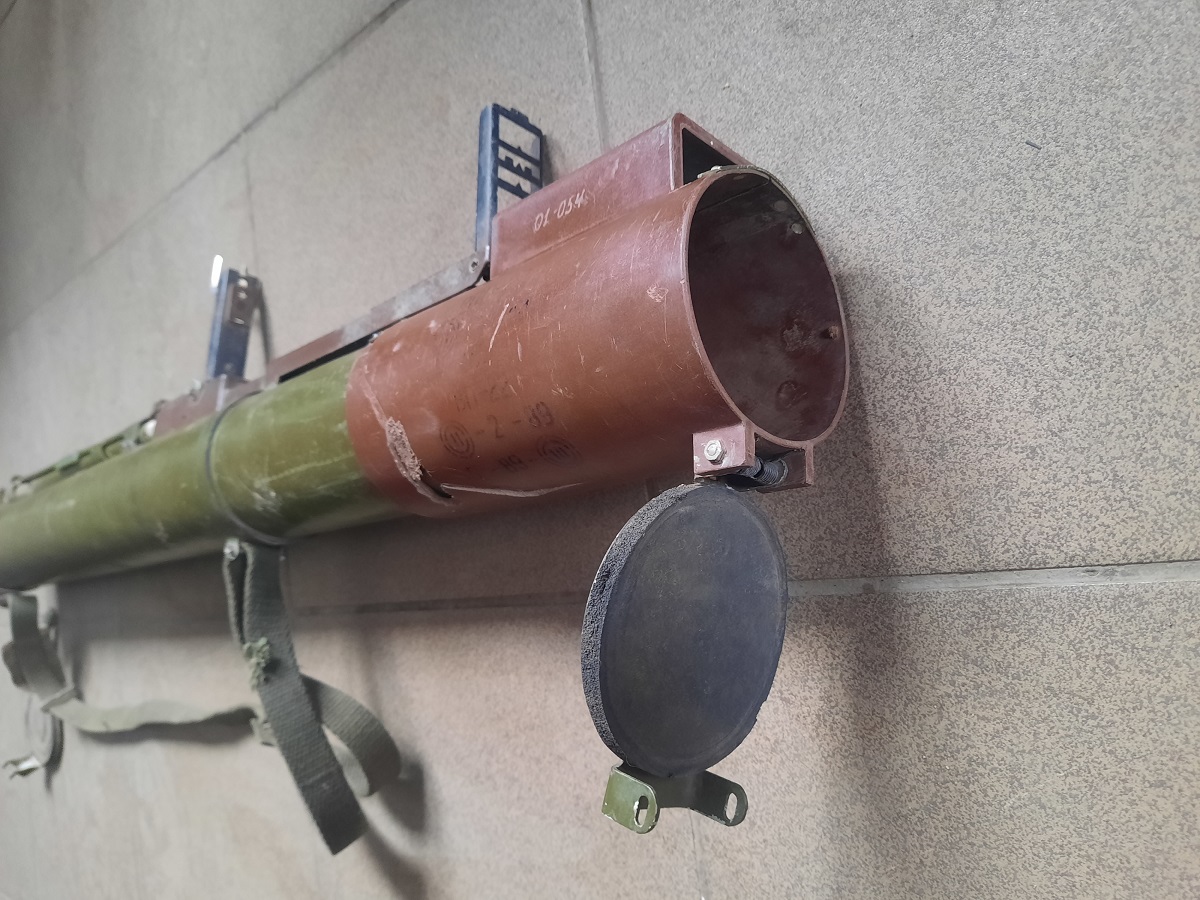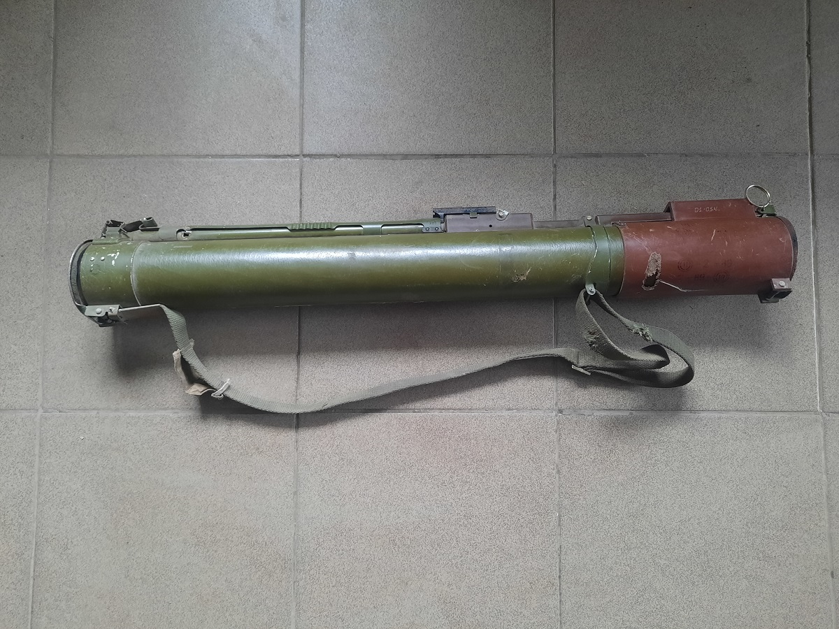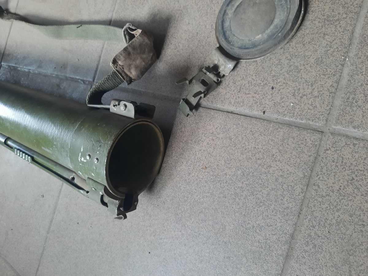 Армейский настоящий тубус гранатомёта РПГ-22 выдвижной (стреляный). Один из осколков застрял в корпусе тубуса.
