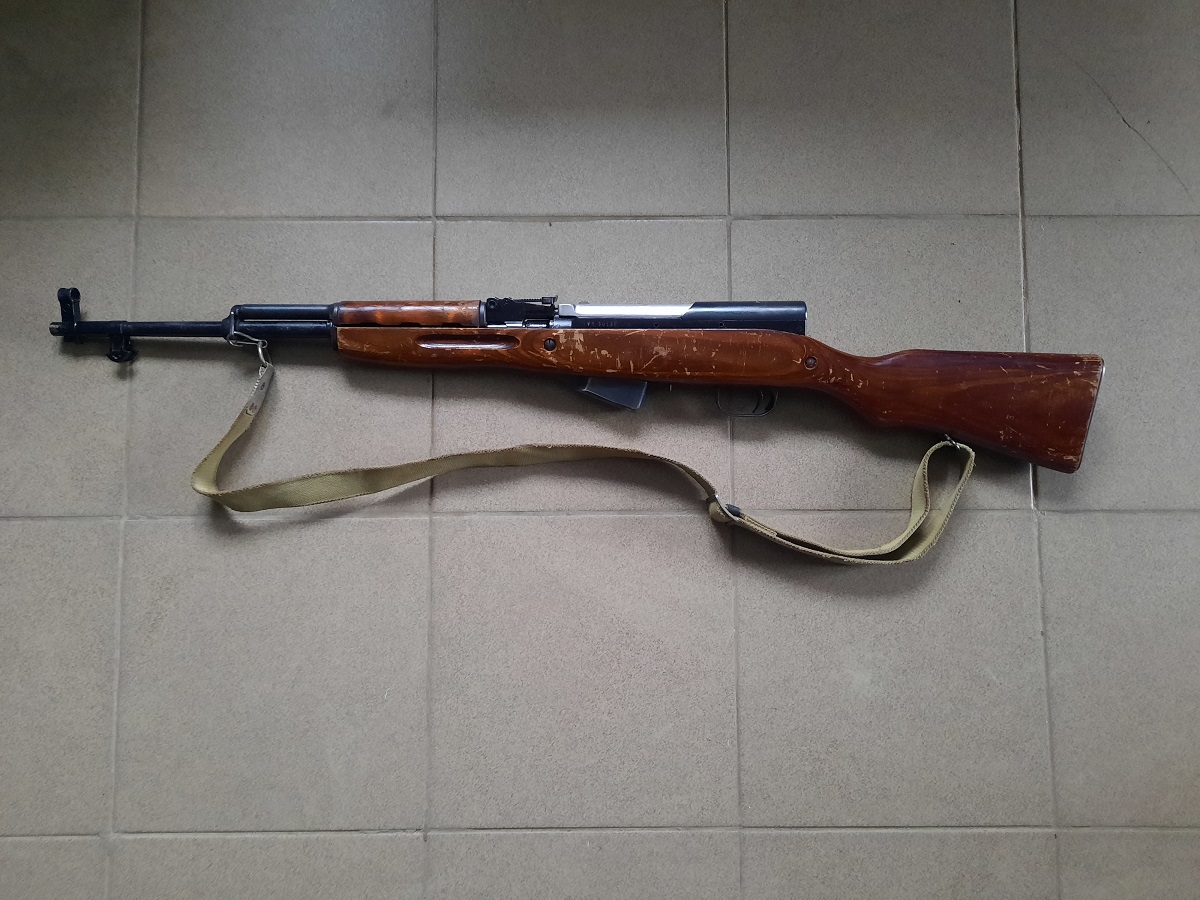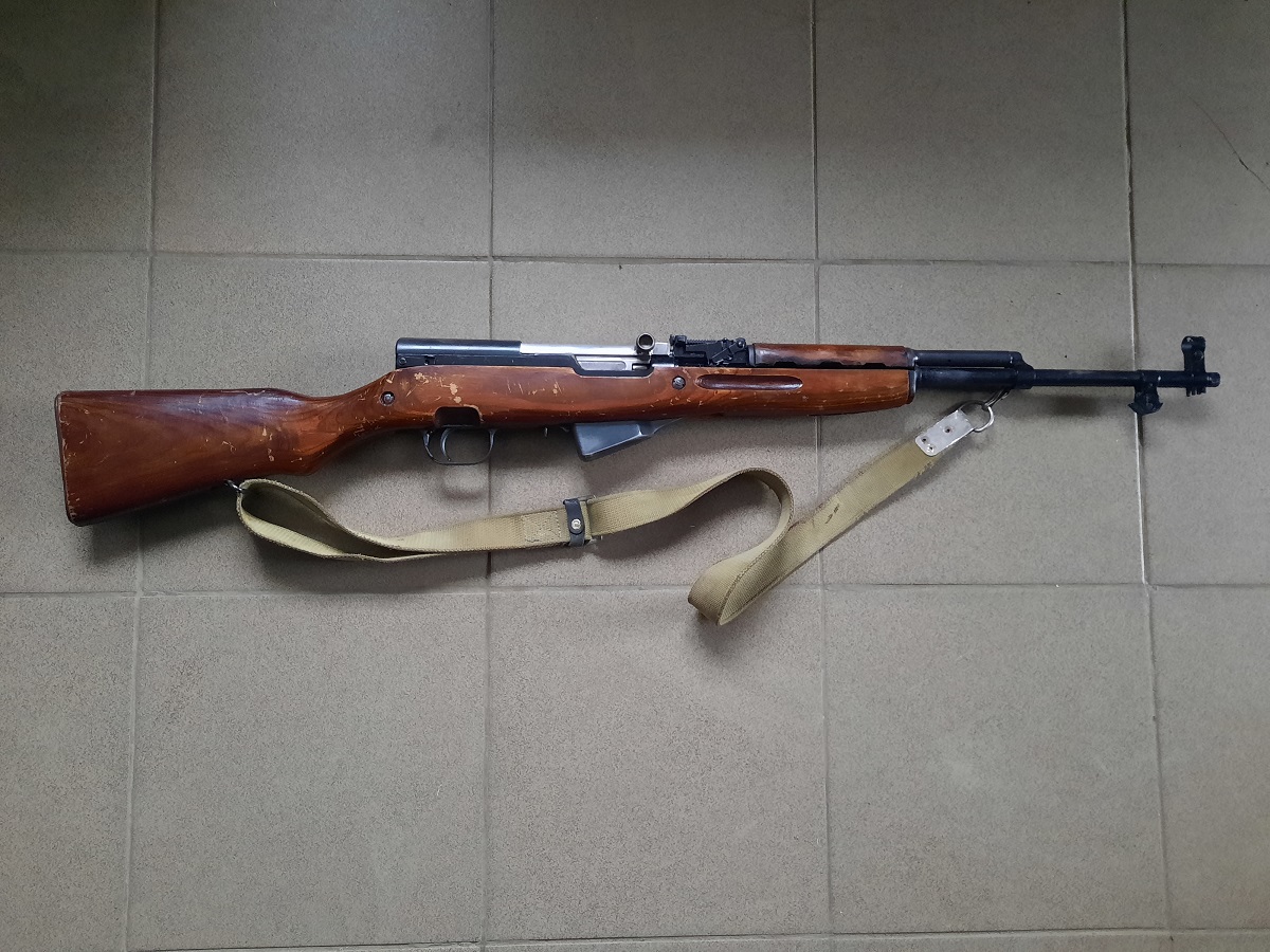 Охолощенный СКС б/у в хорошем состоянии (белозатворный) + ремень + чехол + паспорт.