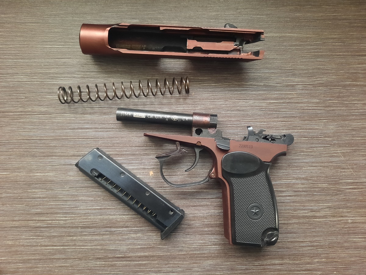 Сборка/разборка охолощенного ПМ осталась без изменений и производится точно так же как и у штатного пистолета.