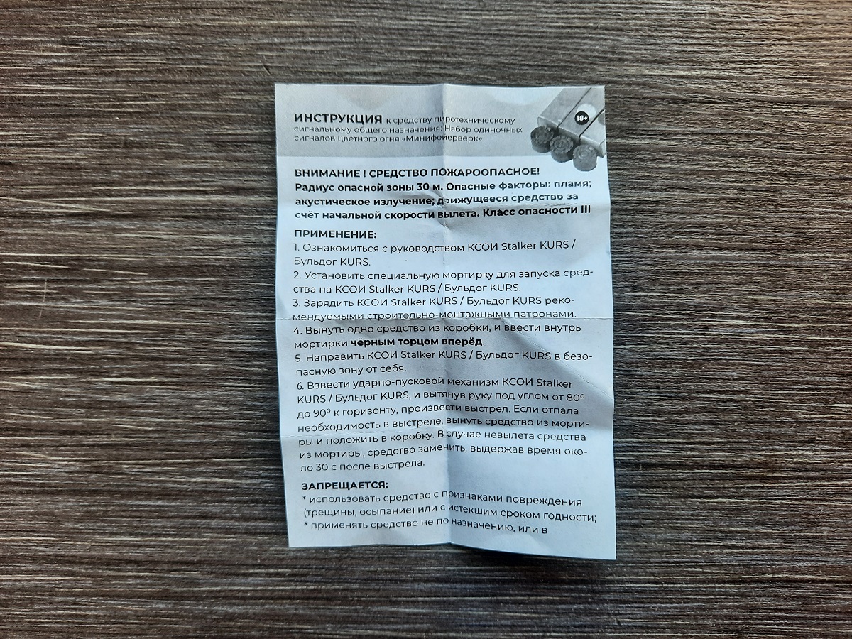 Минифейерверк цветного огня - это пиротехническое изделие для пистолета Stalker KURS и револьвера Бульдог KURS, оснащенного мортирой (насадкой).