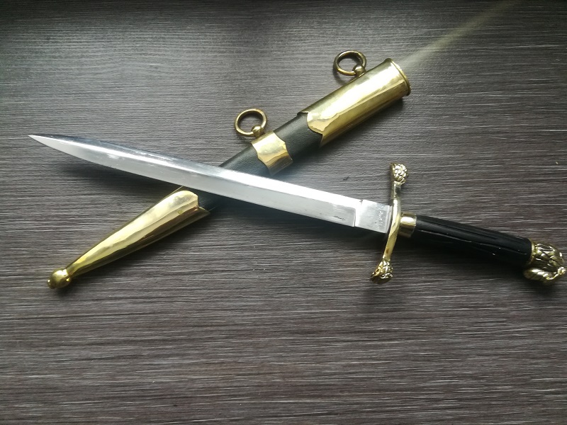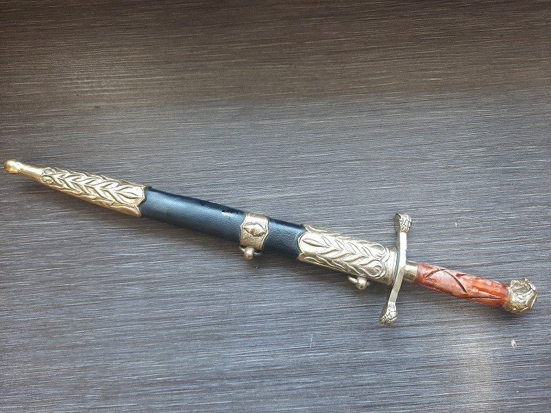 Реплика кортика корпуса лесничих (образца 1904 года). Красивый кортик с декоративными элементами из латуни. Клинок кортика изготовлен из хорошей стали. Лезвие не заточено (имеется сертификат, что кортик является сувенирным изделием). Качественная копия кортика корпуса лесничих будет хорошим подарком работнику лесного хозяйства, а также интересным образцом в коллекцию любителя клинкового оружия.