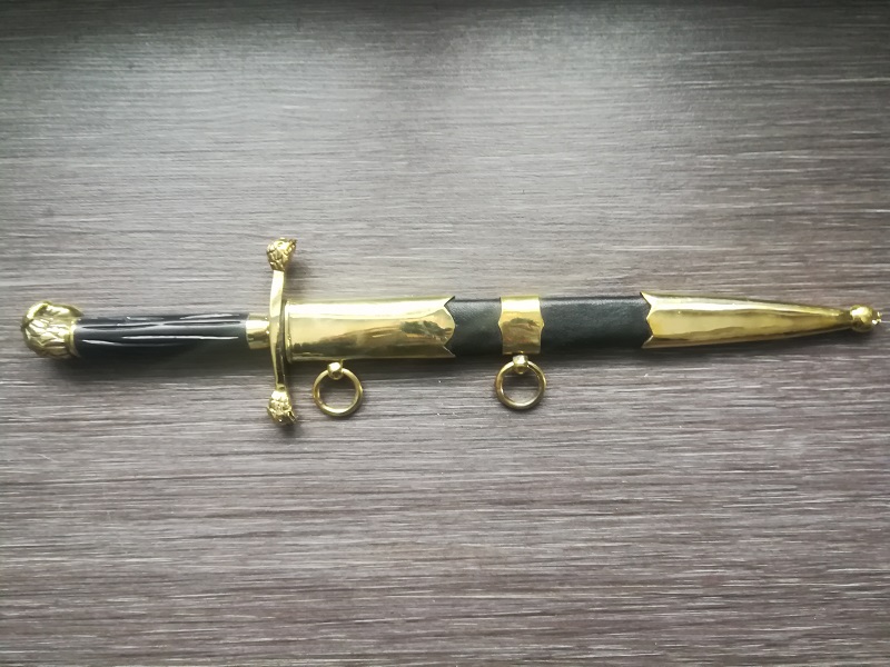Ножны деревянные обтянутые настоящей кожей, рукоять береза (разные цвета, уточняйте у менеджера), латунь настоящая.