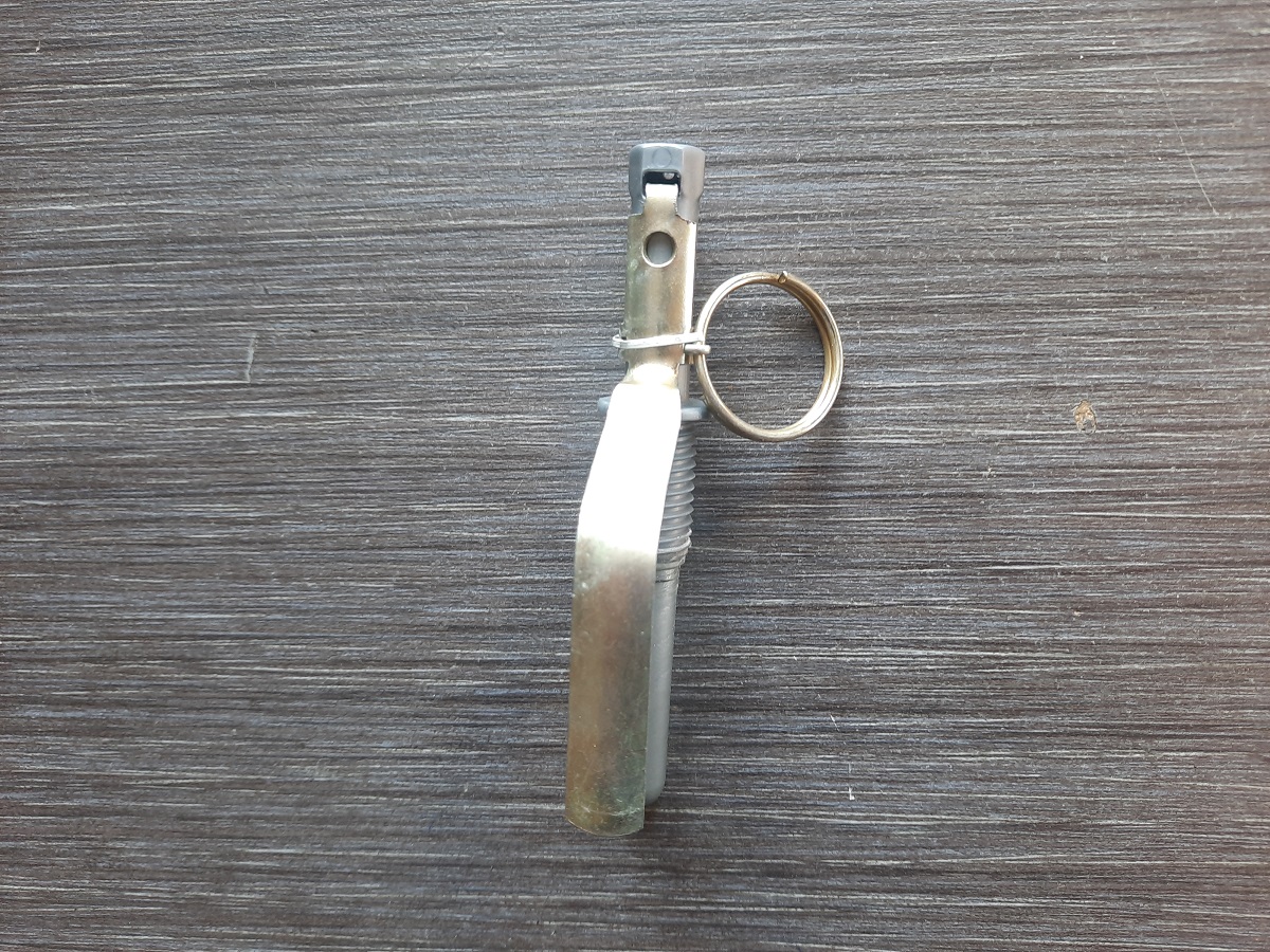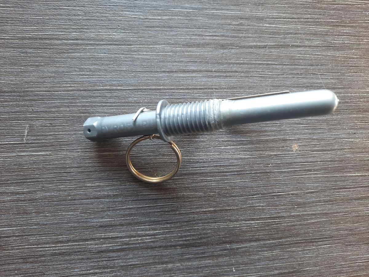 Предохранительная скоба и чека полностью оригинальные. Каждый этап применения полностью идентичен боевому аналогу. Время задержки 3,2–4,2 сек.